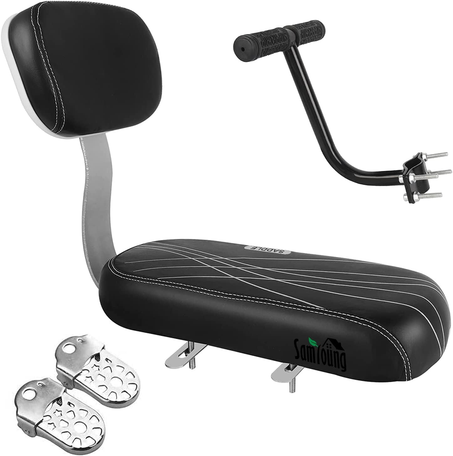 Cojín de Asiento Trasero de Bicicleta Samyoung, Conjunto de Apoyabrazos y Apoyapiés, Asiento Ancho de Seguridad para Niños, Soporte para Asiento de Bicicleta (Negro)