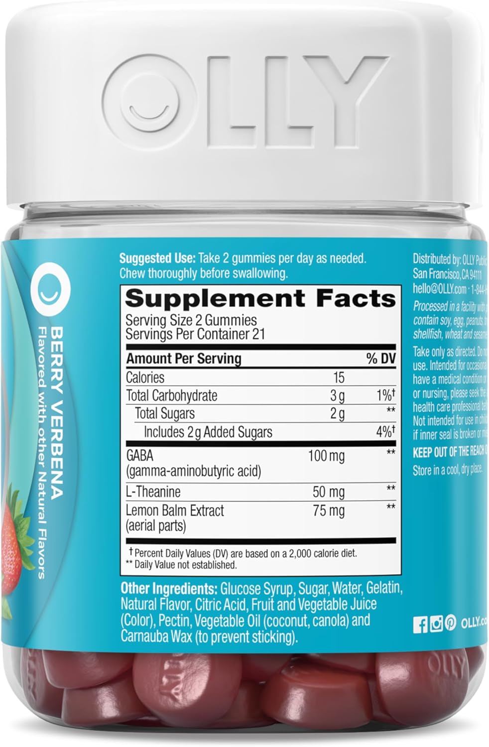 OLLY Adiós Estrés Gomita, GABA, L-Teanina, Melissa, Suplemento para Reducir el Estrés, Bayas - 42 Unidades