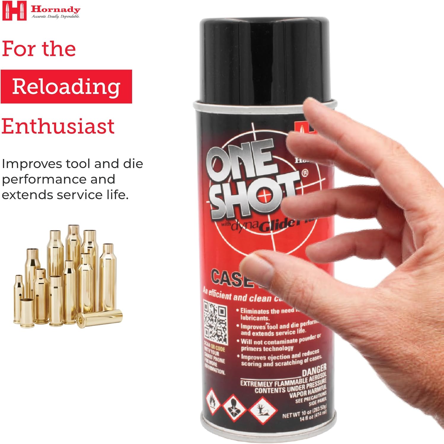 Hornady One Shot Case Lube, 10 oz / 14 fl oz – Aerosol Dry Lube, with DynaGlide Plus – Clean, Non-Sticky and Easy to Use – Contains No Petroleum, Won't Contaminate Powder or Primers