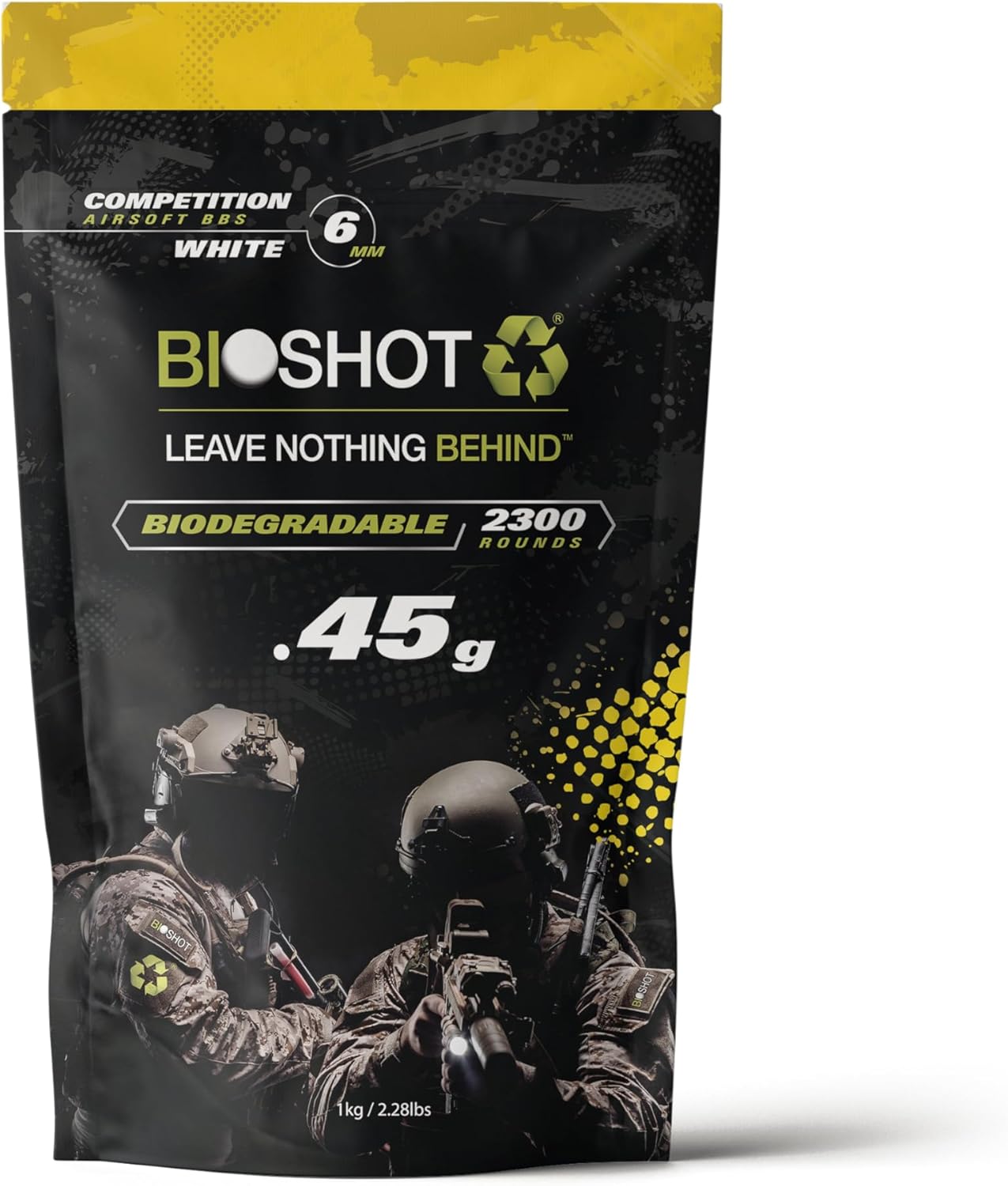 Biodegradable Airsoft BBS - .45g Super Slick Polish - Seamless Sniper Weight Competition Match Grade for All 6mm Airsoft Guns and Accessories (2300 Rounds, White)