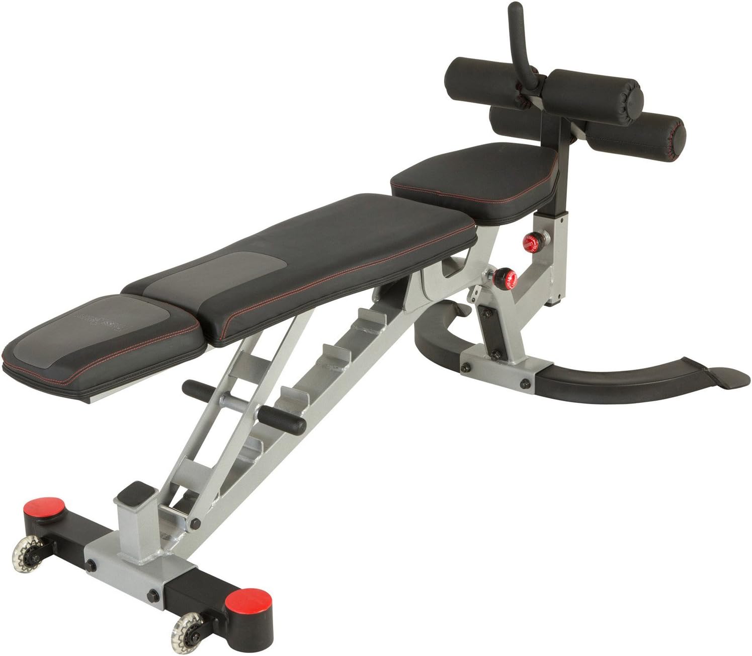Fitness Reality. Real people. Real results. Get the same intense gym-quality workout at home with the X-Class 1500 lb light commercial utility weight bench with detachable leg lock down. Featuring 2" x 3" tubular steel frame and a 2.5" thick commercial grade multi-layer foam filled seat and backrest, the X-Class weight bench can support 1500 lbs Real weight capacity and fits user height up to 6'4". with the smooth 7 level adjustable backrest, you can do all kinds of bench presses you want. So work on your biceps and pectorals, and master your crunches, sit-ups and more with X-Class utility weight bench with detachable leg lock down. Additional features: detachable leg lock down to support Ab crunches and sit ups. Smooth 7 level adjustable backrest from - 15 degree to + 85 degree angles. Independent backrest and seat adjustments. 2.5" thick commercial grade multi-layer foam filled seat and backrest. Soft, durable, double stitched vinyl covered seat, backrest, and headrest. 40.5" extended back and head rest support. Only 1.5" gap between seat and backrest in any adjusted angle position. U shaped stabilizer bar with flat platforms to reduce movement or rocking. Bench seat has 4 adjustments (0 degree, 5 degree, 10 degree and 15 degree degrees). Twist-locking pop pin for securely locking the adjustable seat in place. Can be used with the power cage and squat rack. Oversized transportation wheels for easily moving the bench. Dumbbells are not included. Assembly required. Set up dimensions: 67" L x 35" W x 55" h. Set up weight: 106 lbs. Warranty: limited lifetime.
