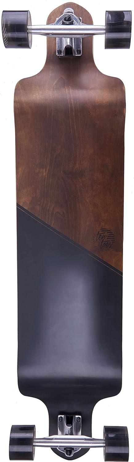 Built for speed, the drops 41-inch drop longboard from ten toes equips you with the agility and control needed to bomb hills and pivot quickly and responsively. This unique board features a symmetrical Drop-Through shape for added balance and improved push-power without the risk of wheel bite as you carve. The drops' deck is lower in the center, helping to secure your feet to the board while keeping your center of Gravity low, which provides you with unsurpassed stability and control as you reach greater speeds. So, go ahead and feed your inner speed demon.
