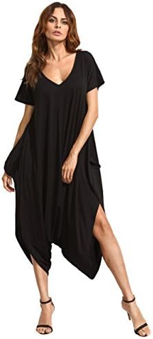 SheIn Women's Casual V Neck Short Sleeve Loose Harem Jumpsuit Romer X-Small Black