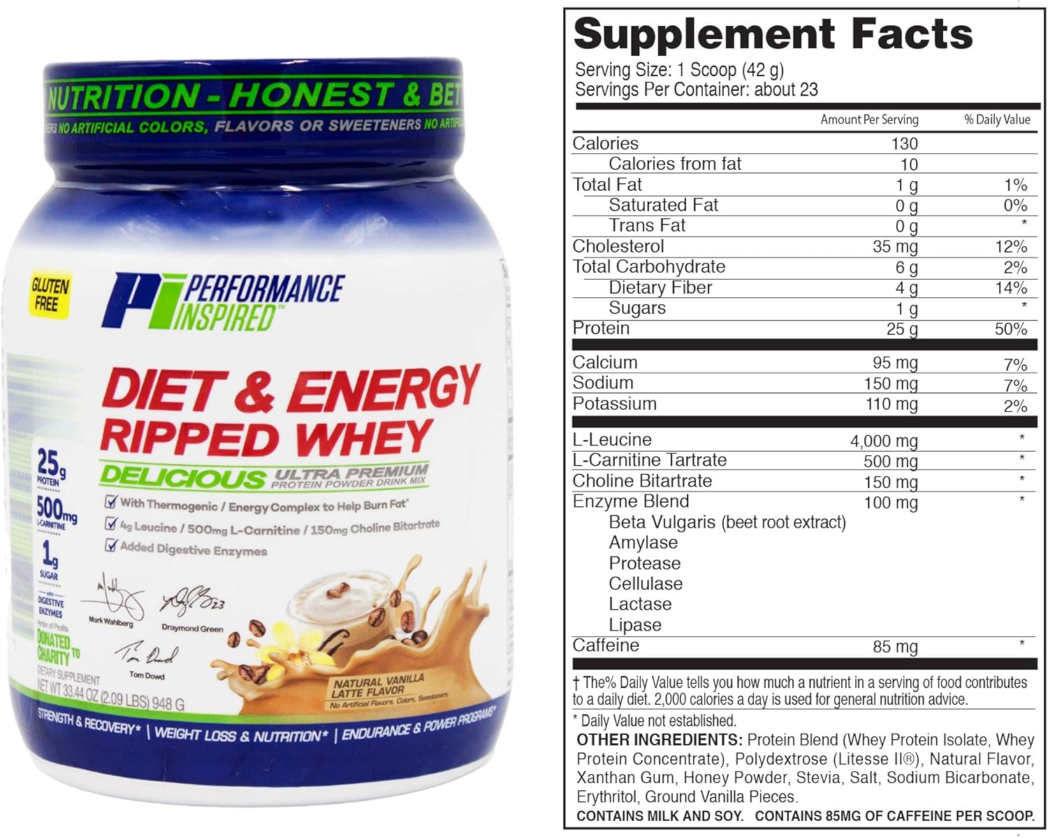 Performance Inspired Diet & Energy Whey Protein – 25G Clean Protein – L-Carnitine & Leucine – Digestive Enzymes – Green Tea Extract – Gluten-Free – 1g Sugar – Vanilla Latte – 2.4 lb