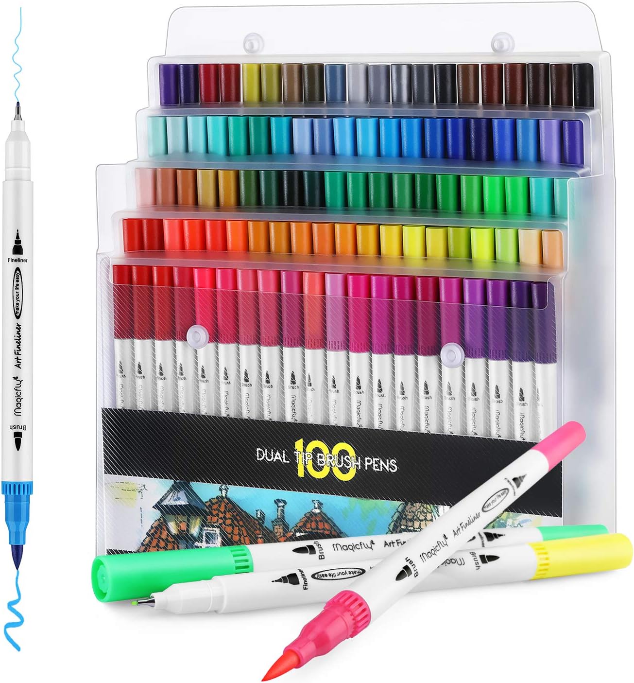 【Multiple Unique Colors】Magicfly watercolor brush pens set includes 100 unique colors and comes with a portable storage bag. A wide range of colors and hues meet your different needs of drawing