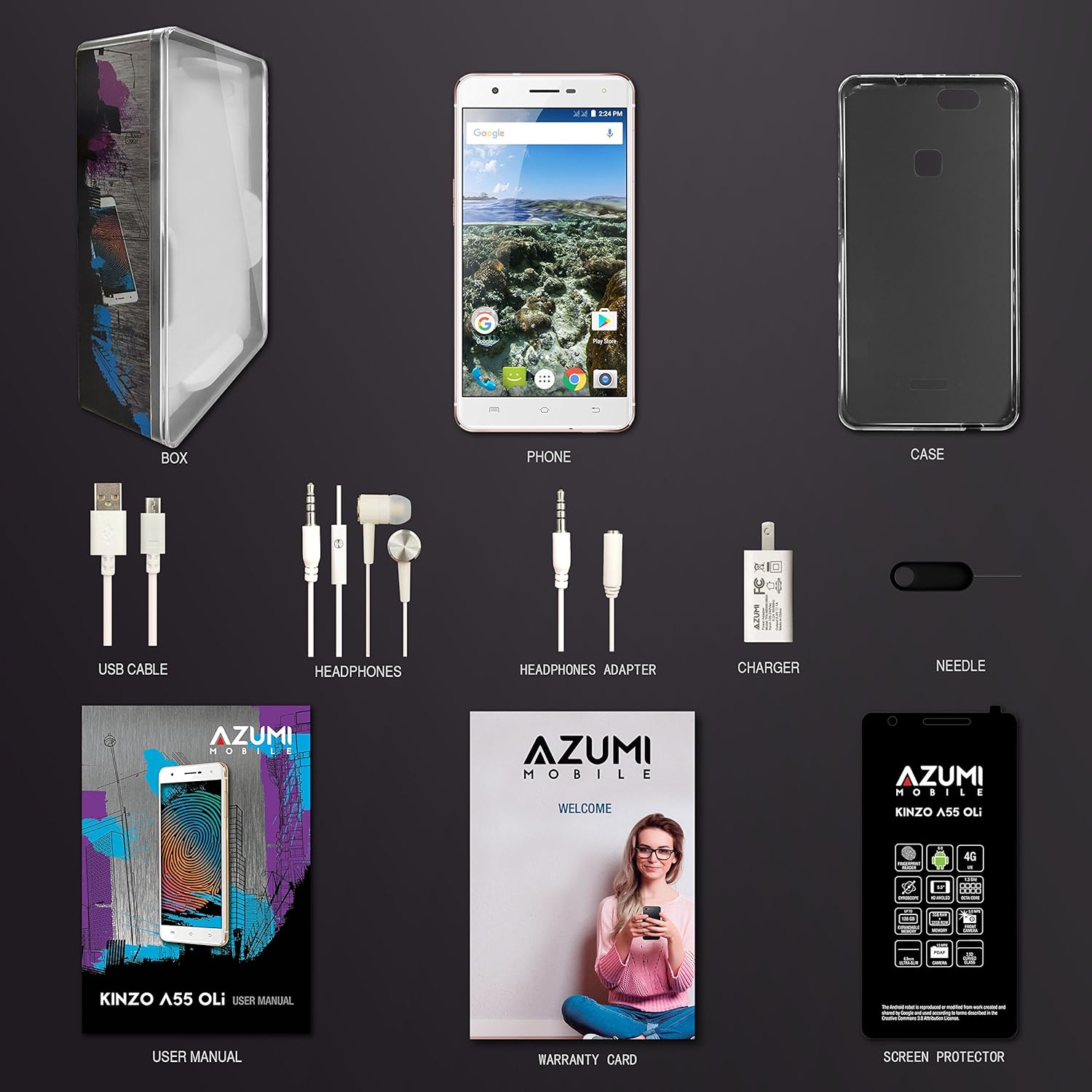 AZUMI Kinzo A55 OLi - 5.5" High Definition AMOLED Display 32GB +3GB 4G LTE US GSM Unlocked Dual Sim Smartphone Black (AT&T and T-Mobile Compatible)