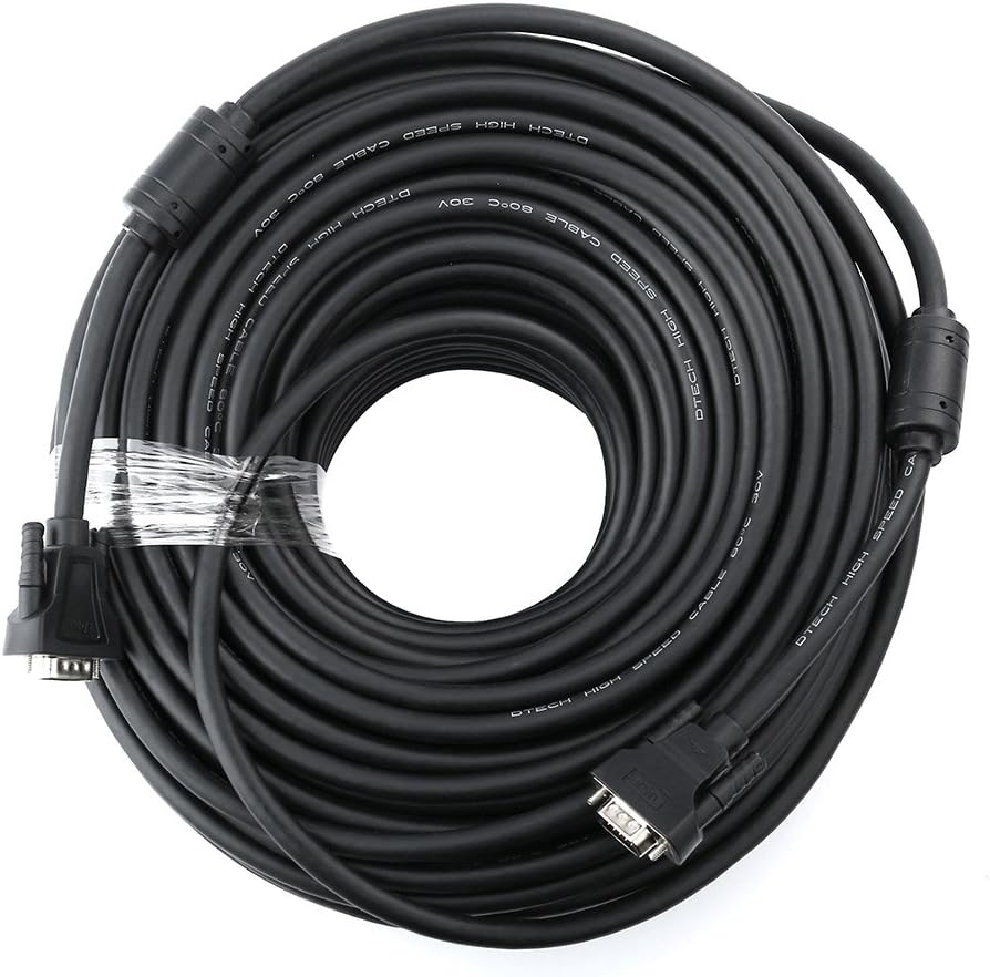 Heavy duty Extra long VGA 150 feet Cable : High-Quality Engineering Experience a reliable, high-quality connection with this convenient VGA to VGA cable 150ft from us. The computer monitor cord links VGA-equipped desktop or laptop computer to monitor, display or projector with 15 pin VGA port. Ideal for at home or work, it creates a reliable connection for anything from gaming to video editing or video projection. Thick VGA computer monitor video cable provides superior performance due to the combined effect of its nickel-plated connectors and heavy bare copper conductors (no copper clad steel). Even more, it features foil-and-braid shielding and ferrites beads to reduce cross talk, suppress noise, and help prevent electromagnetic interference (EMI) and radio frequency interference (RFI). Run Your Devices over Long Distance When you need a long monitor cable to connect a laptop to projector in different rooms, VGA extension cable 150ft (46m) extends your operating distance and make movement conveniently, your devices then can be placed in a location you want. Specific Standard 15-pin VGA male to VGA male cable Nickel-plated connectors; 100% bare copper conductors VGA cord for computer monitor Al-foil shielding protect against EMI/RFI interference VGA cables Resolution up to 1920 x 1080 (Full HD 1080p) Length: 150 Feet (46 Meters) Original Packing Included 1 x DTECH VGA Cable 150-Foot m/m