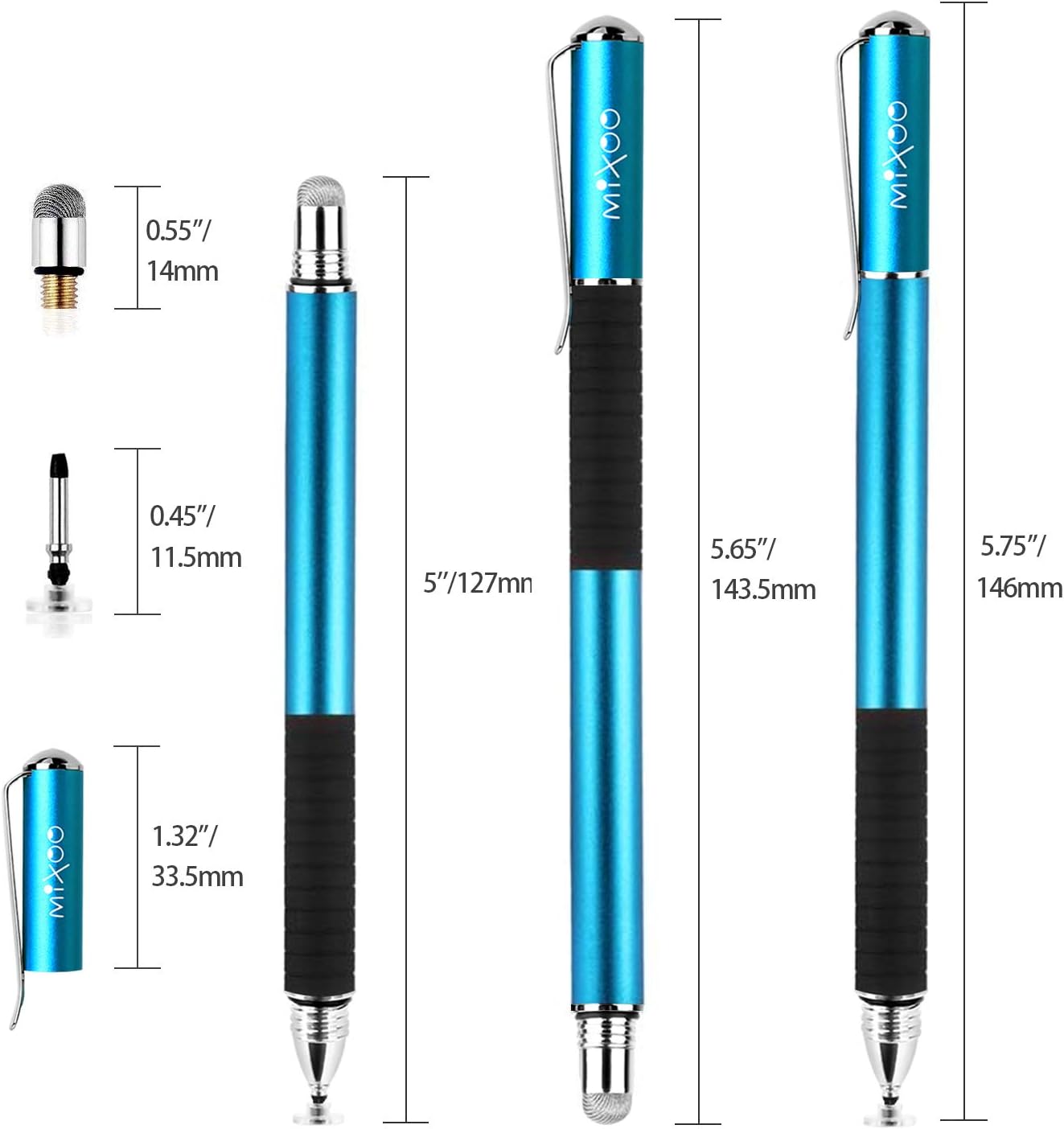 Mixoo 2-in-1 Precision Disc & Fiber Stylus with Replaceable Tips for Capacitive Touch Screen Devices (Black/Blue)