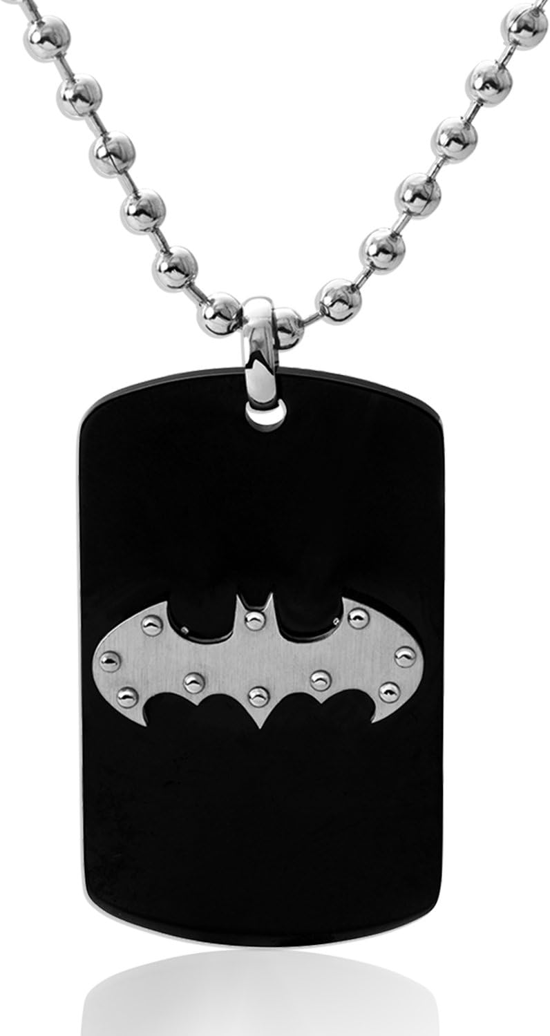 DC Comics Jewelry for Men Batman Stainless Steel Dog Tag Pendant, 22" Ball Chain