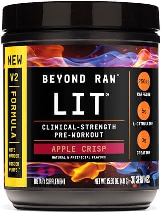 BEYOND RAW LIT V2 Clinical Strength Pre Workout Powder, Hits Harder, Bigger Pumps, Caffeine, L-Citrulline, Creatine, Apple Crisp, 30 Servings
