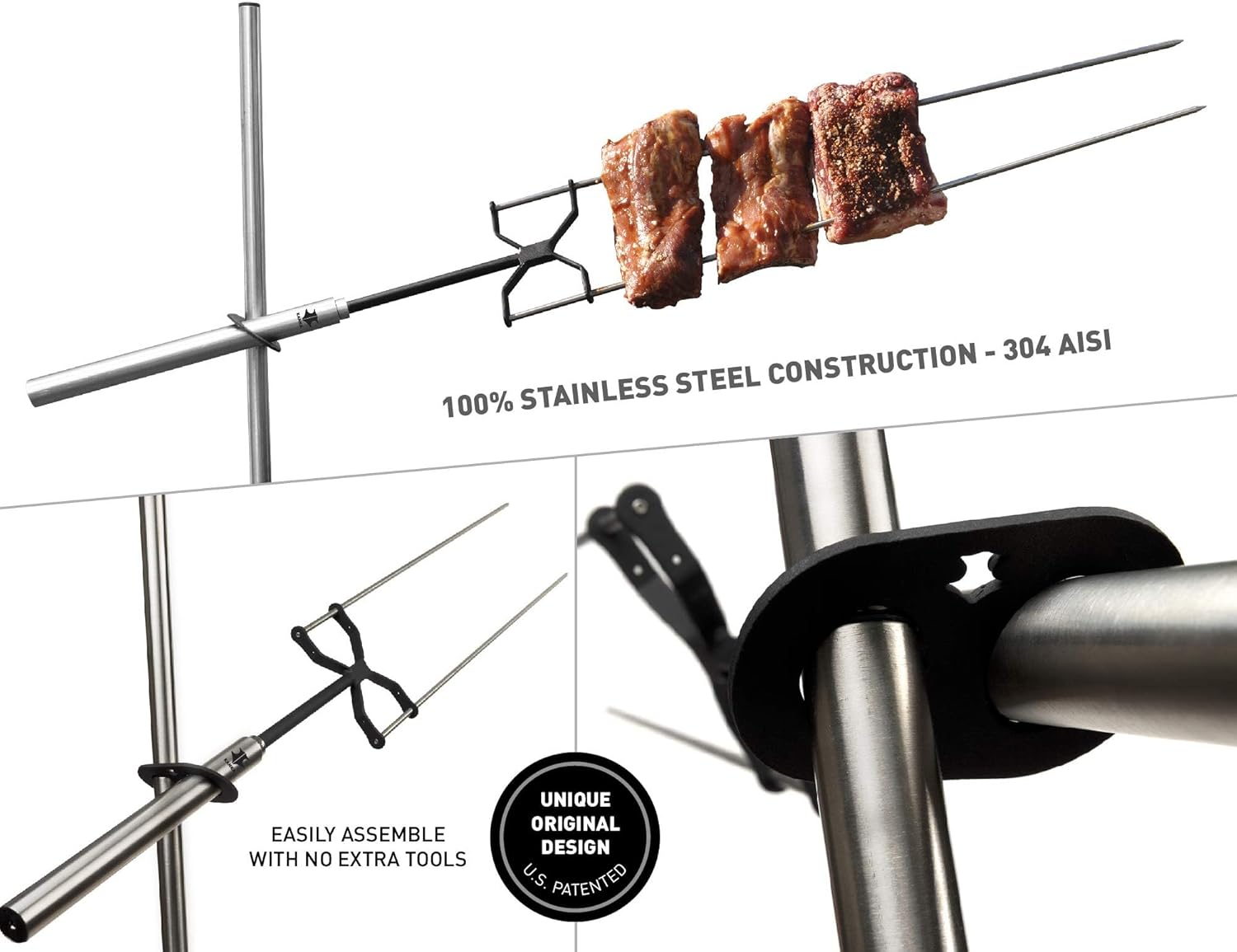 Parrilla KANKA: parrilla asadora resistente para el hogar y portátil para exteriores. El motor eléctrico funciona con 110-220V o baterías. Cocine sobre cualquier parrilla o fuego. TODOS los equipos de acero de grado profesional