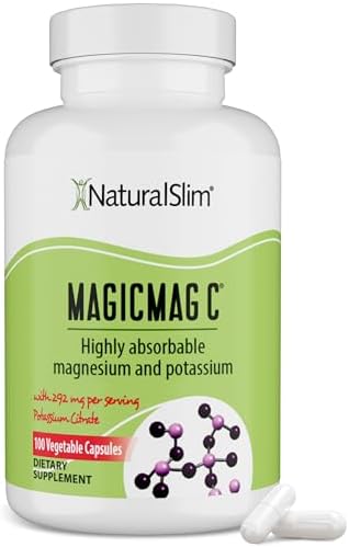 Suplemento NaturalSlim de Potasio y Magnesio 100 Cápsulas – Suplementos de Citrato de Magnesio MagicMag C para Apoyo del Sueño, Salud del Corazón y Alivio de Calambres Musculares | Sin Gluten 1 Paquete