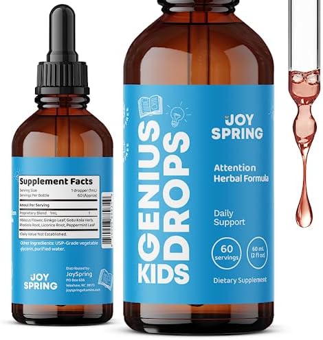 JoySpring Organic Focus Drops for Kids – Brain Support & Attention Supplement with Ginkgo Biloba – Clinically Tested Nootropic for Kids & Teens
