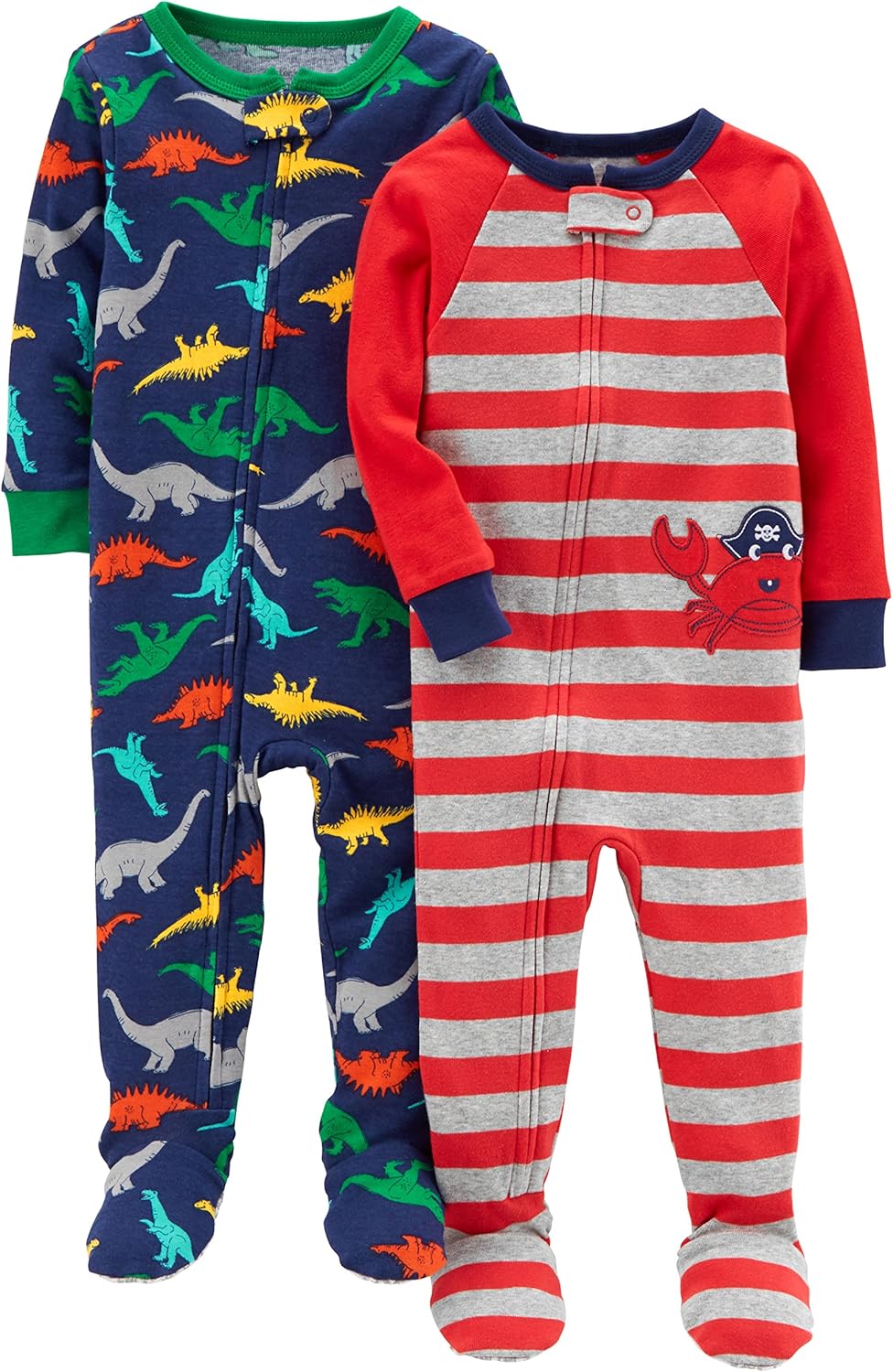 Pack of 2 snug fit footed cotton pajamas, zip from chin to ankle with built in gripper footies