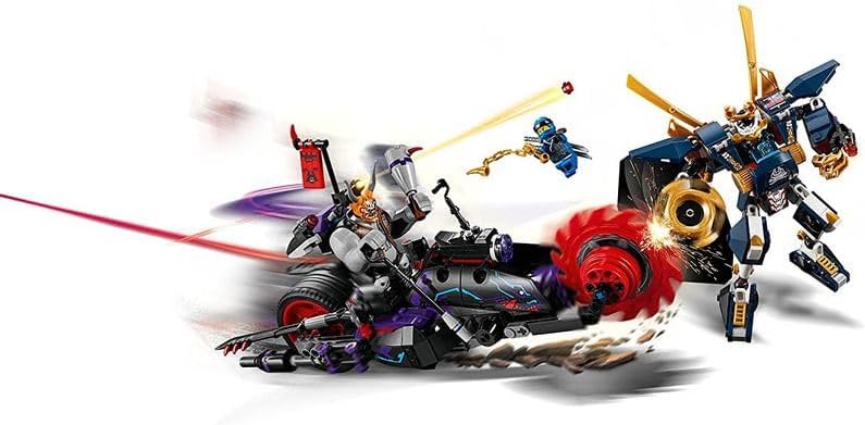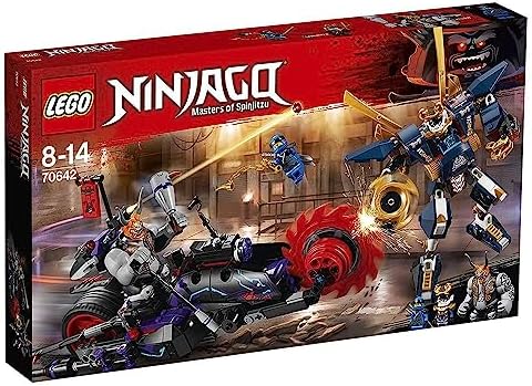 Combina el Oni Chopper de Killow contra el Mech de Samurái X en una batalla por la Máscara Oni del engaño, con este juego lleno de acción de LEGO NINJAGO 70642 Killow contra Samurai X. El Oni Chopper cuenta con una hoja de sierra delantera giratoria, hojas abatibles y monopatines desmontables para Killow, mientras que el Samurai X Mech azul articulado tiene un disparador doble, una cuchilla giratoria y una hoja Samurai X desmontable. Este genial juguete para niños también incluye 2 minifiguras y una figura grande con armas para reforzar las batallas de rol.