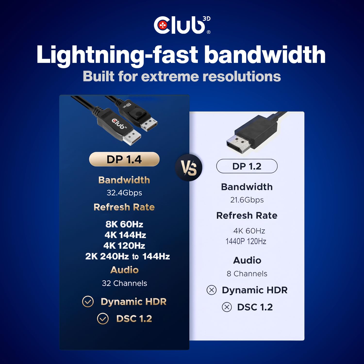 ADVANCED FEATURES: DisplayPort 1.4 adds support for Display Stream Compression 1.2 (DSC), Forward Error Correction (FEC), and high Dynamic Range (HDR), allowing you to utilize all the features of your DisplayPort 1.4 port of your graphics card and monitors.