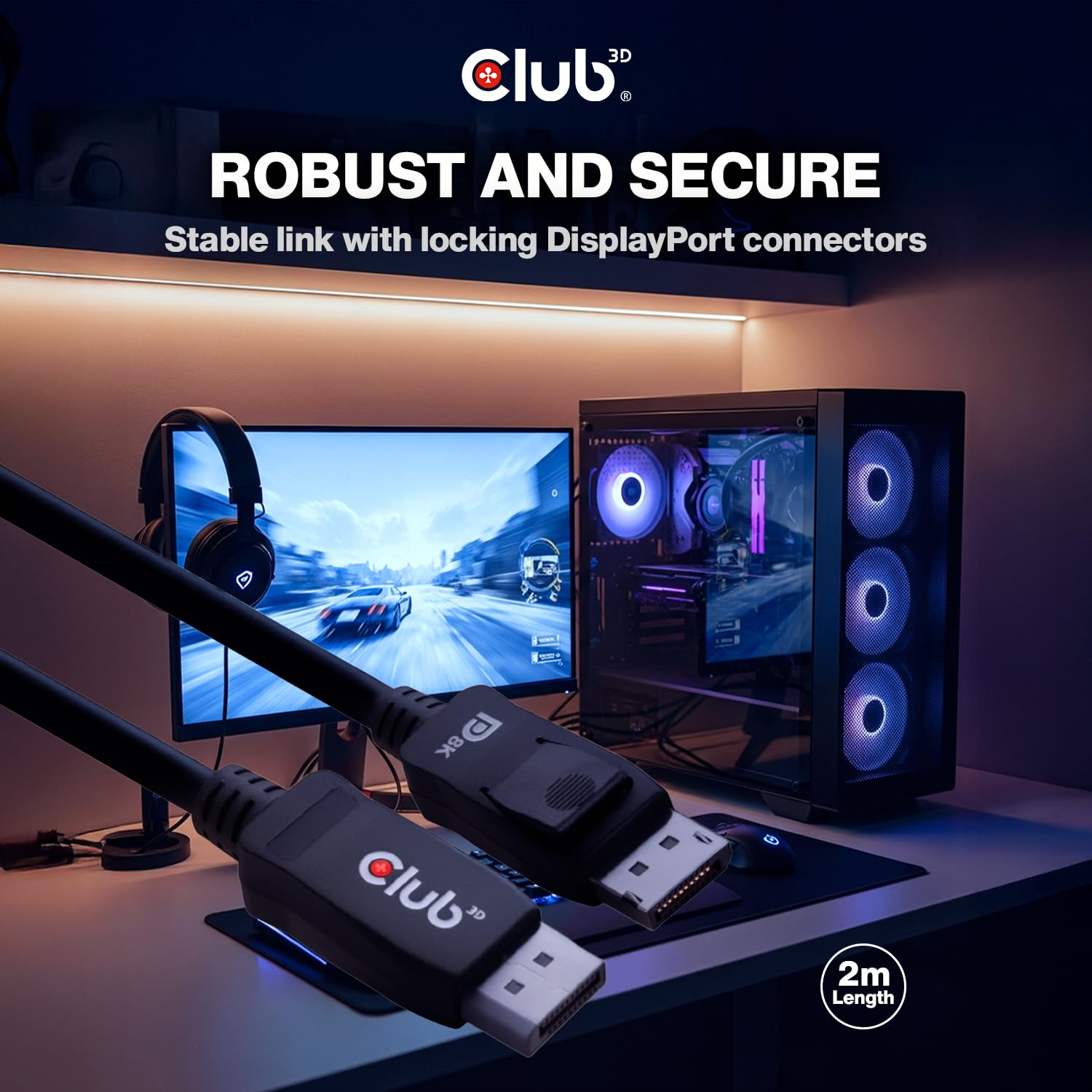 Club3D CAC-2068 VESA Certified DisplayPort to DisplayPort 1.4/Hbr3 M/M Cable DP 1.4 8K 60Hz 2m - 6,56ft
