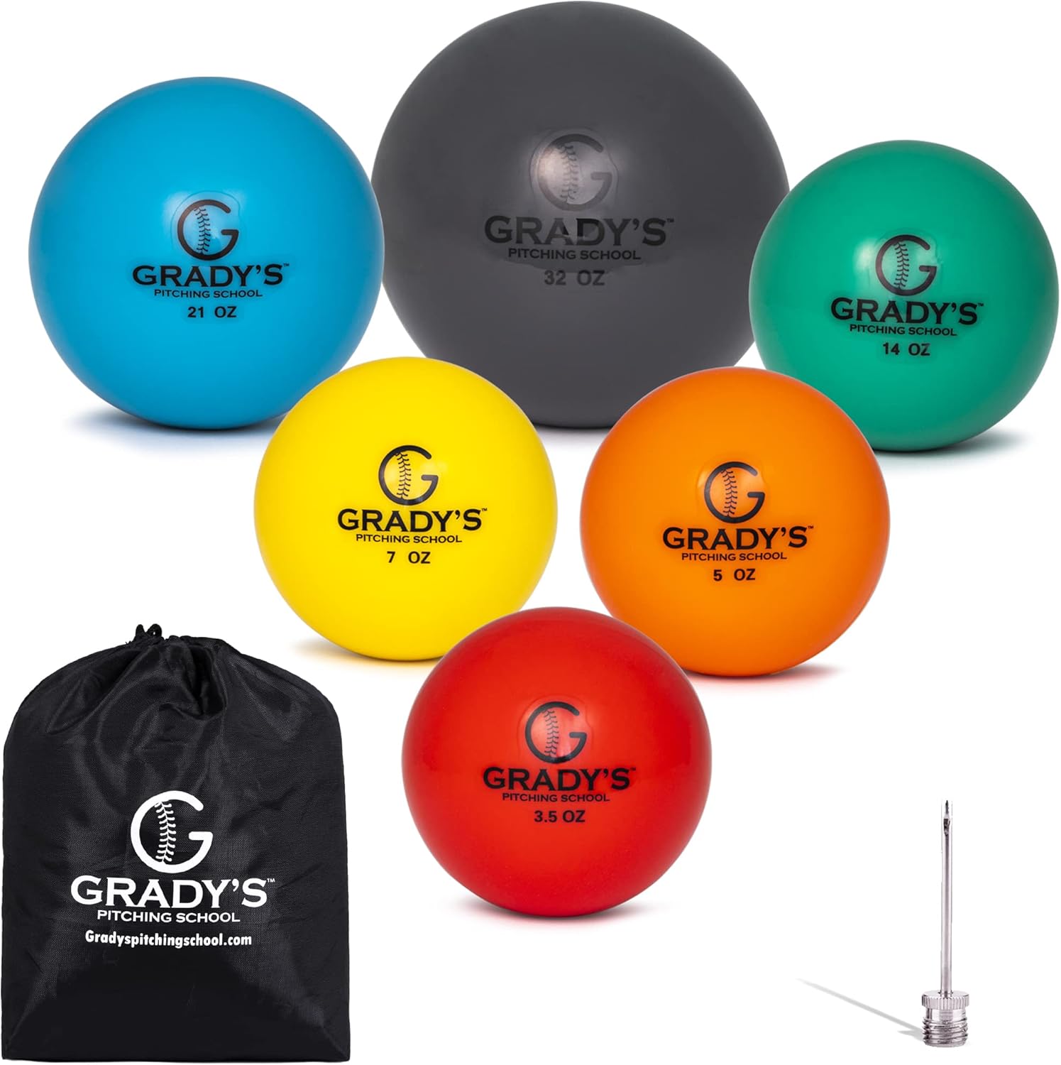 Grady's Pitching School Weighted Velocity Training Ball Set – Seam & Seamless Options for Pitching & Arm Strength + Set of 6 Balls + Carrying Case