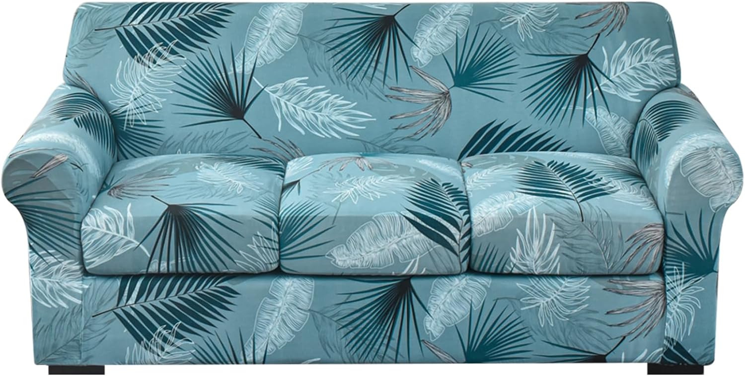 HOTNIU 4 Pieces Stretch Couch Covers (1 Sofa Cover + 3 Cushion Cover) Non-Slip Couch Slipcovers Universal Fitted Sofas Furniture Protector, Pattern# BX