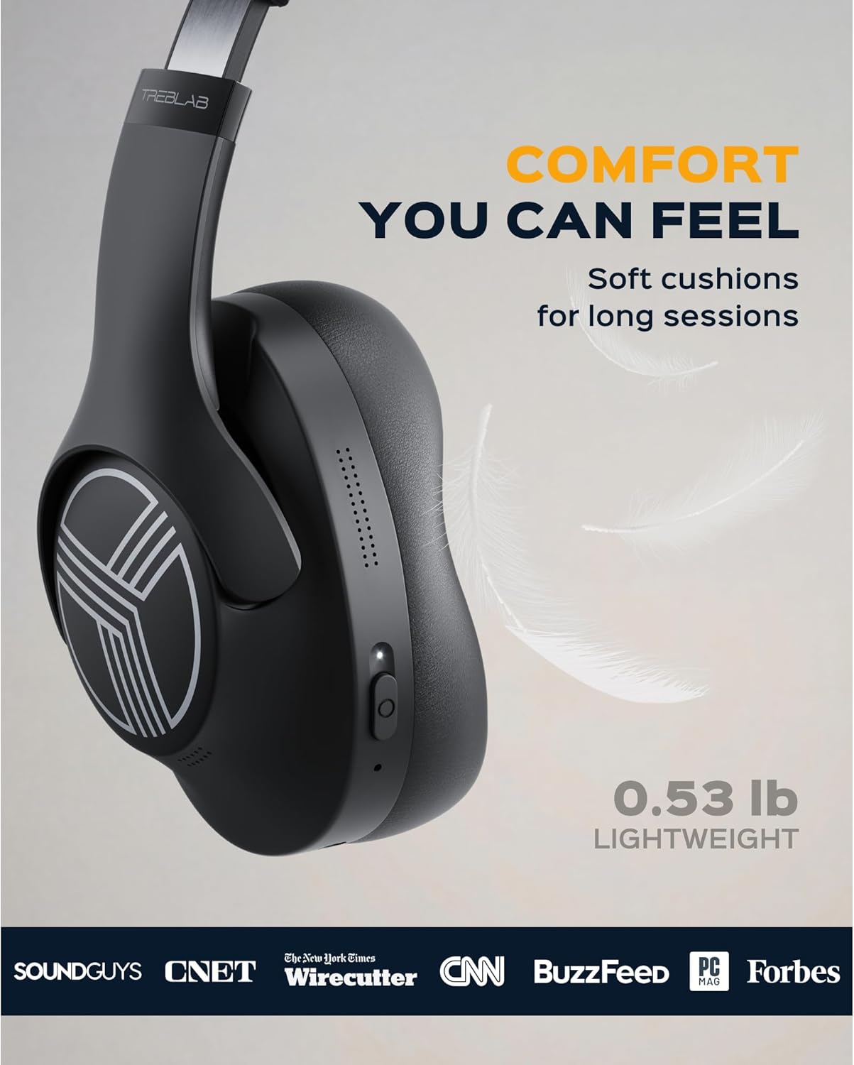 TREBLAB Z2 – Hybrid Active Noise Cancelling Wireless Headphones for Gym & Sports Workout, Lightweight Foldable, 58H Battery, Deep Bass, Over Ear Headphones Wireless Bluetooth with Mic for Travel