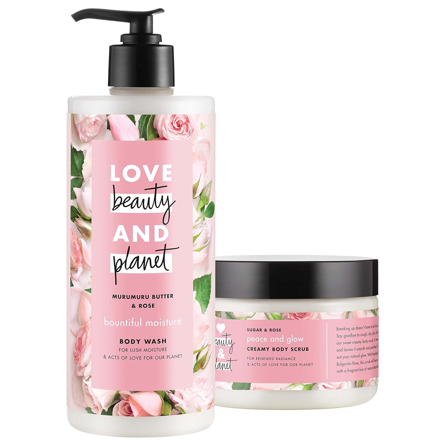 Love Beauty & Planet Body Wash and Scrub Murumuru Butter, Sugar & Rose, 2 Piece Set