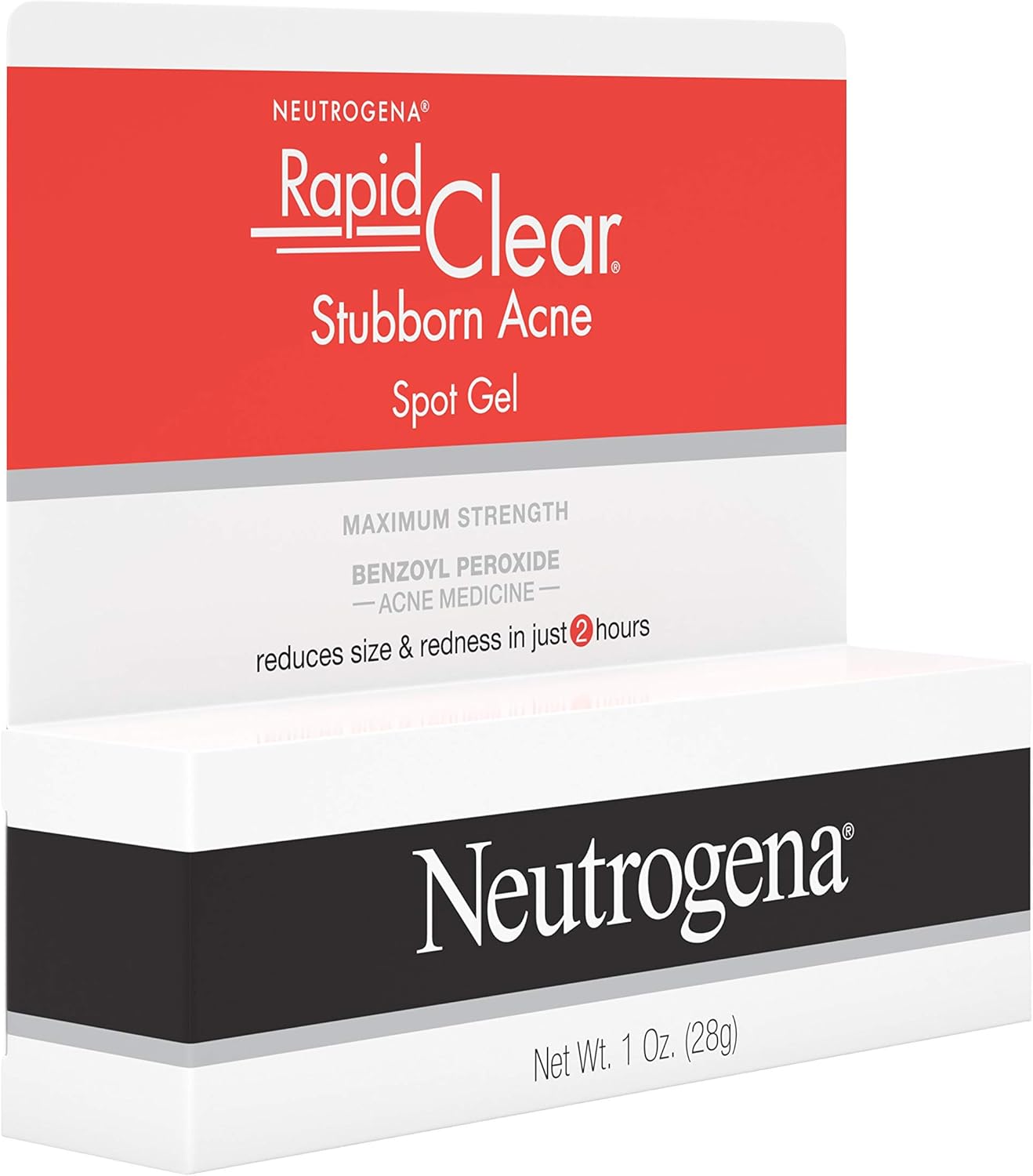 Gel Neutrogena Rapid Clear Stubborn Acne Spot, 1 onza, paquete de 5, reduce visiblemente la apariencia del acné y logra una piel más clara con el gel de tratamiento Neutrogena Rapid Clear Stubborn Acne Spot Gel con peróxido de benzoílo. Se ha demostrado clínicamente que la fórmula máxima para combatir el acné de este tratamiento para las espinillas, de una marca recomendada por dermatólogos, reduce rápidamente el tamaño y el enrojecimiento del acné persistente en solo dos horas. La eficaz fórmula en gel contiene un 10% de peróxido de benzoílo, el medicamento para el acné que más recomiendan los dermatólogos para una piel más clara sin receta, trata las espinillas causadas por el acné y ayuda a prevenir futuros brotes. Diseñado para la piel propensa al acné, este tratamiento antimanchas de uso diario mejora de forma continua las manchas causadas por el acné a lo largo del día y se puede aplicar hasta 3 veces al día. Ayuda a minimizar la aparición de espinillas y brotes de acné con el gel de tratamiento Neutrogena Rapid Clear Stubborn Acne Spot Gel. MODO DE EMPLEO: Limpie bien la piel antes de aplicar este producto. Cubra toda la zona afectada con una capa fina una o tres veces al día. Debido a que puede producirse una sequedad excesiva de la piel, comience con una aplicación diaria y luego aumente gradualmente hasta dos o tres veces al día si es necesario o según las indicaciones de un médico. Si se produce sequedad o descamación molestas, reduzca la aplicación a una vez al día o cada dos días. Si va a salir, aplique protector solar después de usar este producto. Si se presenta irritación o sensibilidad, suspenda el uso de ambos productos y consulte a un médico.