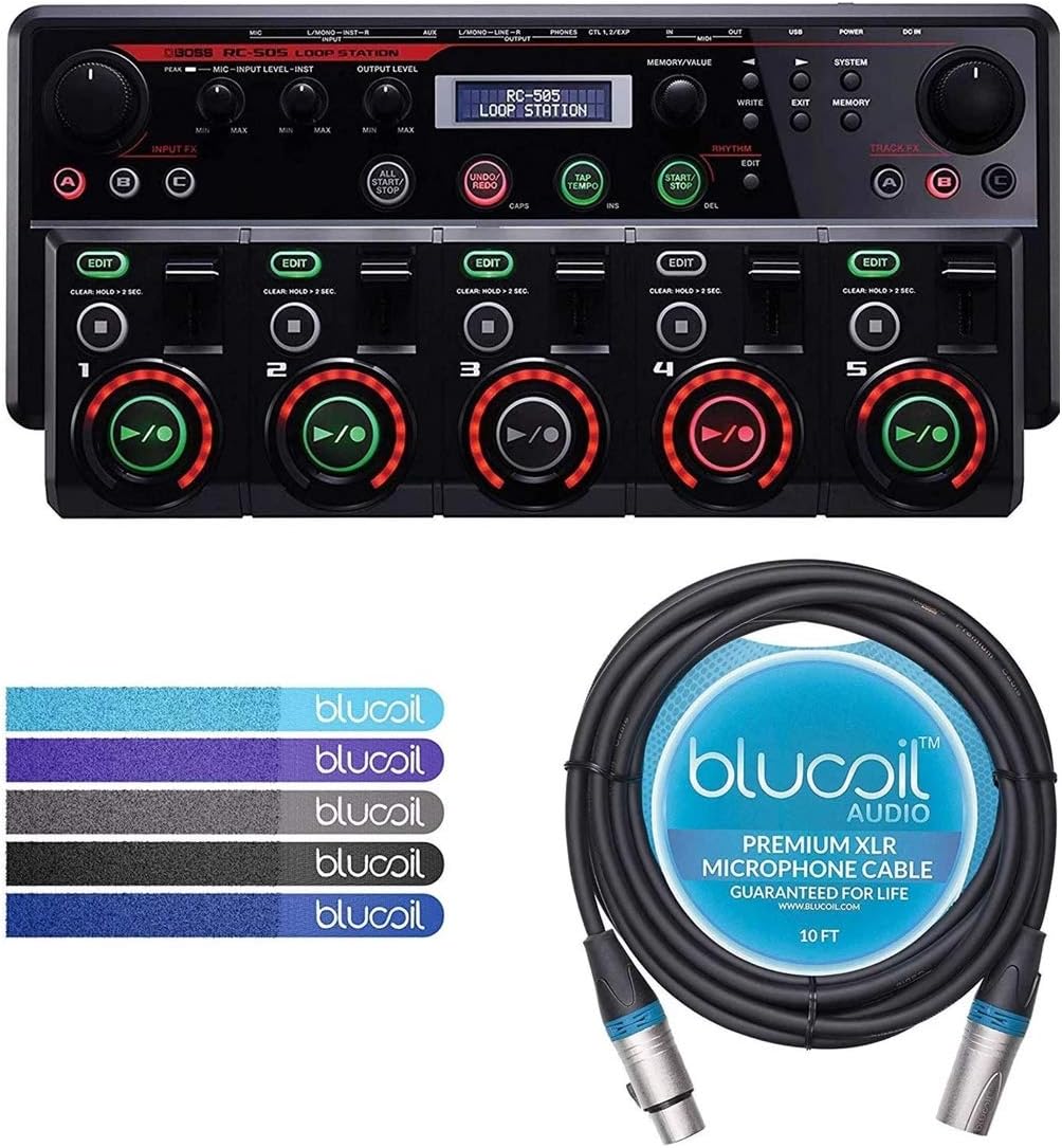 BOSS RC-505 Loop Station Tabletop Looper Bundle with Blucoil 10-FT Balanced XLR Cable, and 5-Pack of Reusable Cable Ties