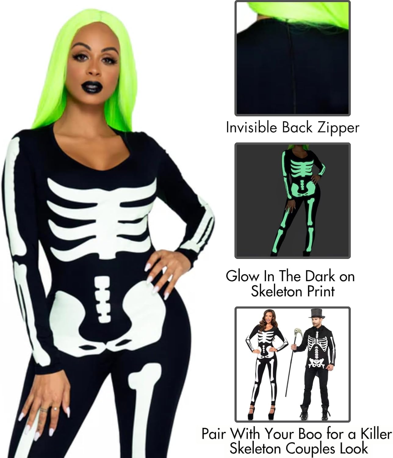 Leg Avenue Women's Glow in The Dark Skeleton Bodysuit Halloween Costume