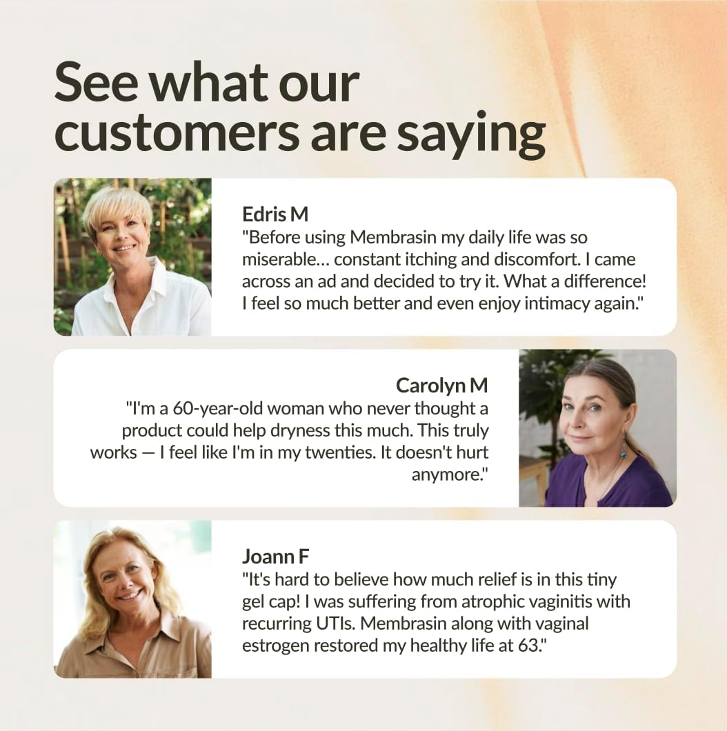 Real Women - Made for women navigating the changes of menopause. Our daily oral supplement helps restore your body’s natural lubrication, easing discomfort from dryness, itching, and irritation, while supporting healthy vaginal function