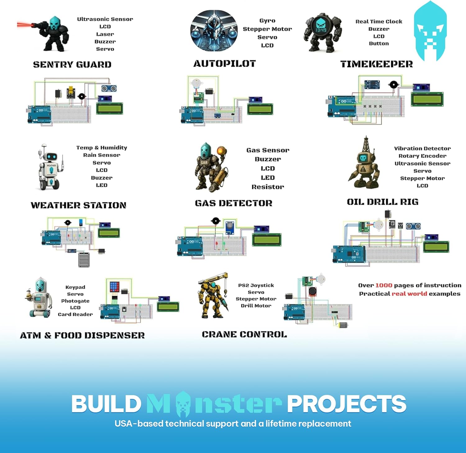 Soporte técnico/al cliente eficaz desde EE. UU. con garantía de reemplazo de por vida en todas las piezas – El Monstruo viene en una caja organizadora resistente de 16" x 12" para un transporte y almacenamiento seguros. No se requiere soldadura. Por favor, háganos saber sobre cualquier mejora que podamos hacer al Kit Monstruo. La retroalimentación crítica es muy apreciada