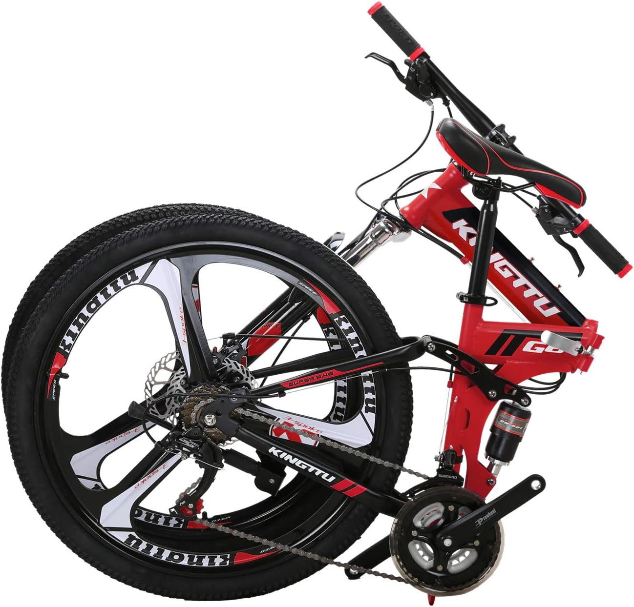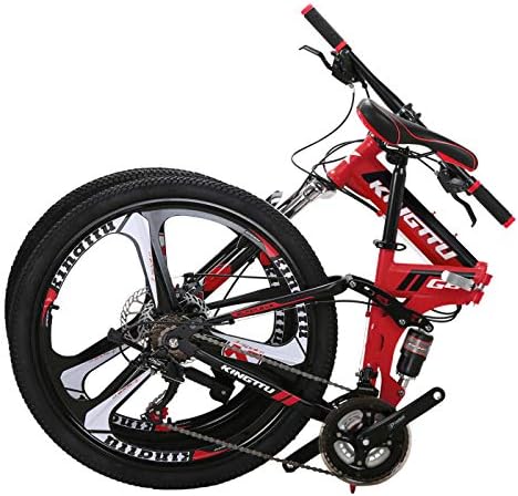 Eurobike Adult Folding Bike,26 Inch Full Suspension Mountain Bike,21 Speeds Folding Bicycle with Disc Brake and 17 inch Frame MTB Bicycle