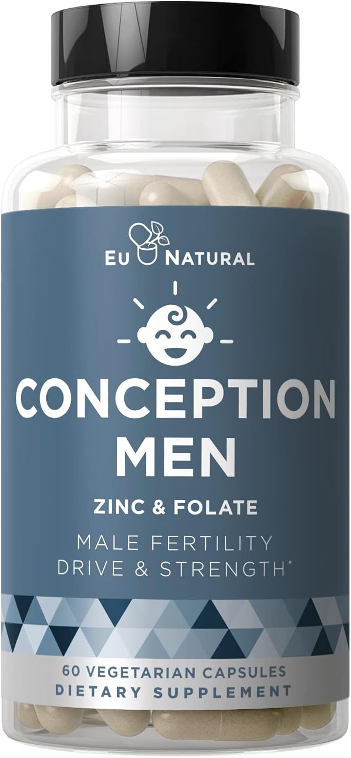 Conception Men Fertility Vitamins – Male Optimal Count, Motility Strength, Healthy Volume Production – Zinc, Folate, Ashwagandha Pills – 60 Vegetarian Soft Capsules