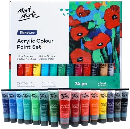 Mont Marte Acrylic Paint Set 24 Colours 36ml, Perfect for Canvas, Wood, Fabric, Leather, Cardboard, Paper, MDF and Crafts