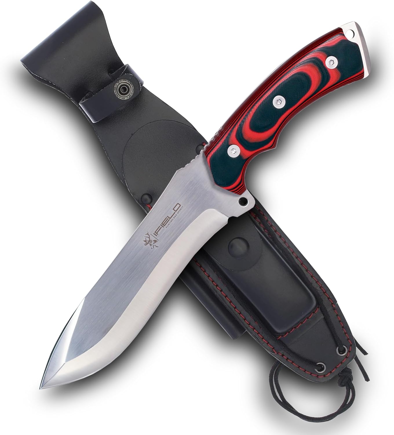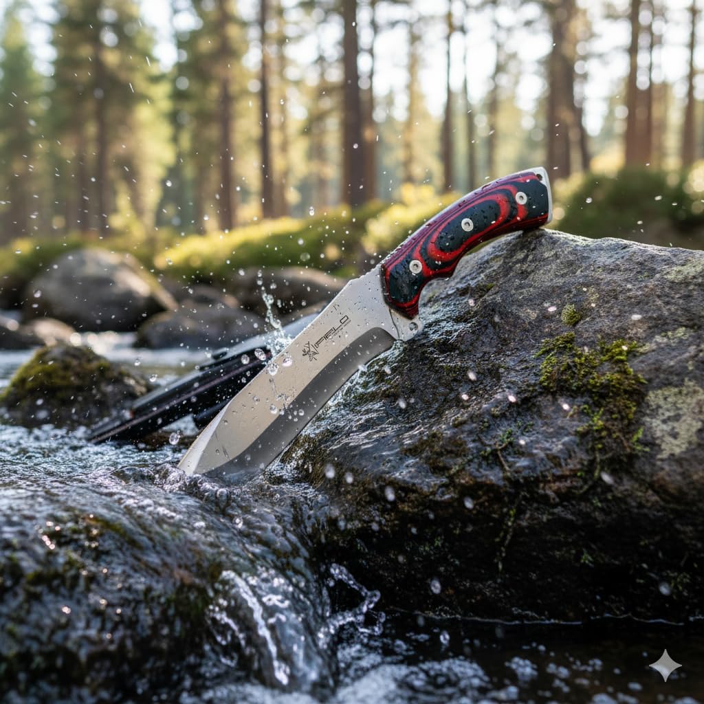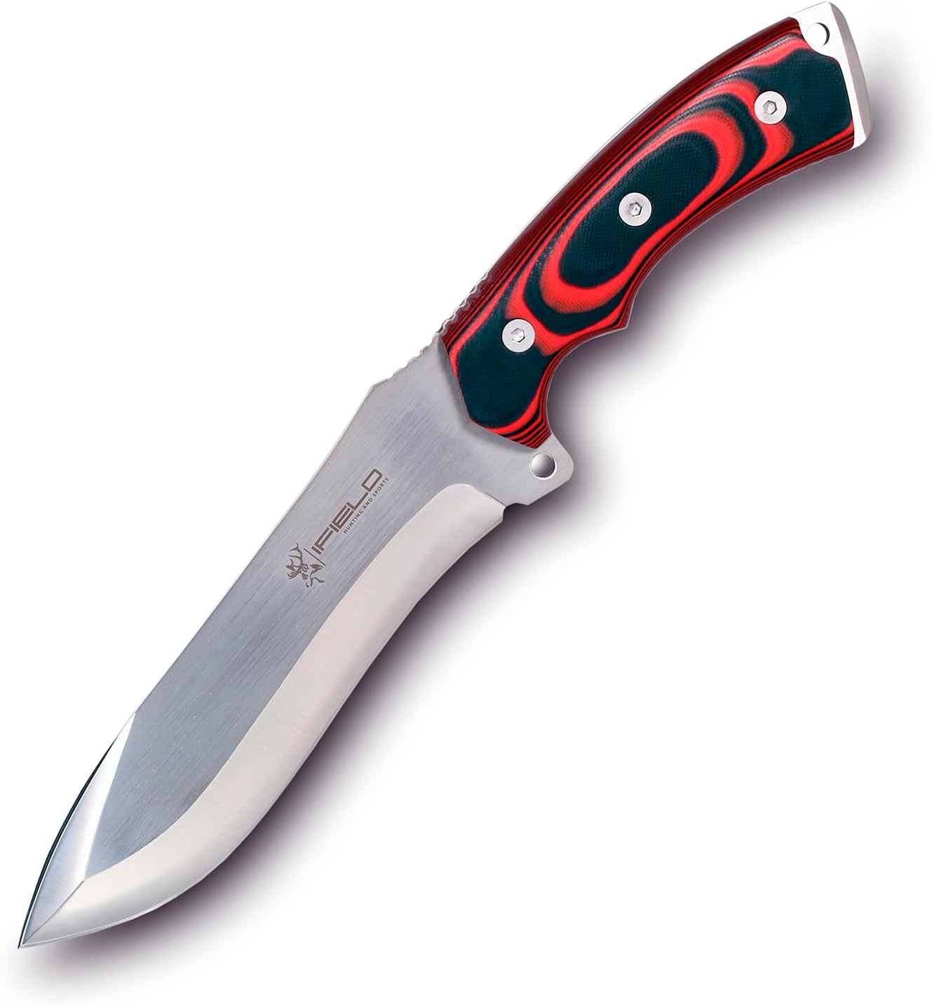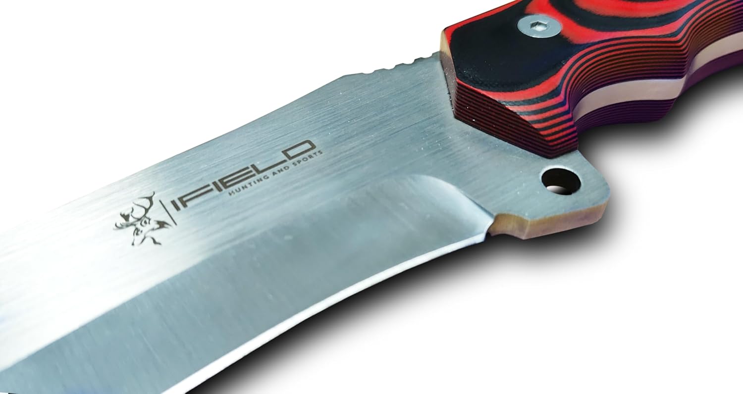 iField 150 Survival Camping cuchillo de hoja fija con mango de micarta rojo y hoja de acero 440C, dureza 58-60 HRC, herramienta de camping para pesca, caza, actividad deportiva