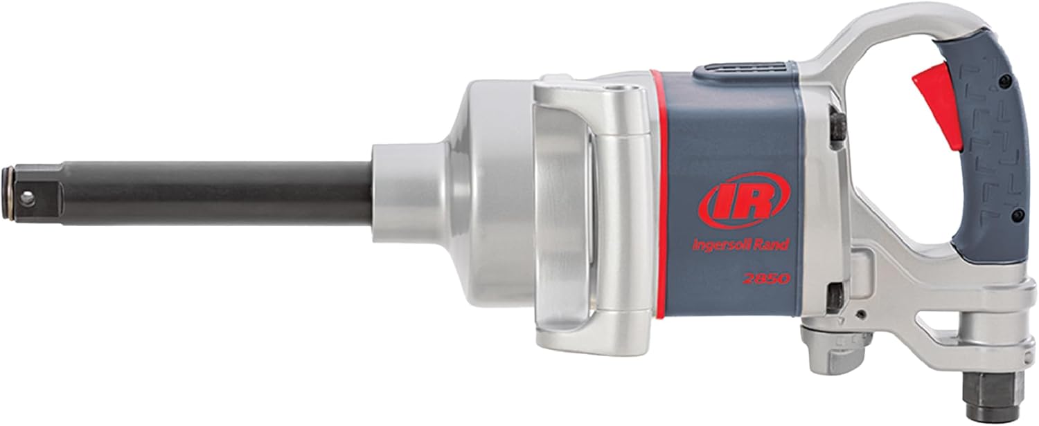 Llave de impacto de yunque extendido Ingersoll Rand 2850MAX-6 de 1 pulgada, extensión de 6 pulgadas, diseño liviano, potente salida de par inverso de hasta 2100 pies-libras, resistente, 5500 RPM, mango de 360 grados, gris