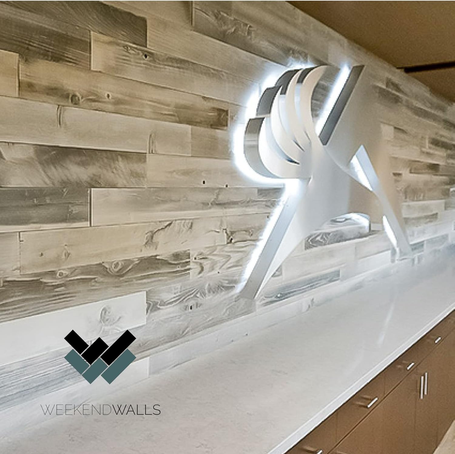 Revestimiento de pared Weekend Walls, madera reciclada y desgastada, fácil de despegar y pegar (10 pies cuadrados, plateado)