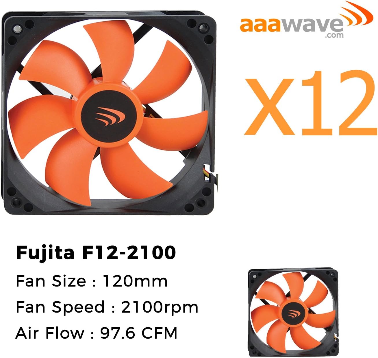 SET INCLUDED 1. 1 set x AAAWave 14GPU mining rig case set 2. 12 pcs. x 120mm AAAWave 2100 rpm fan 1. 1 set x AAAWave 14 GPU mining rig case set The chassis is made out of 2020 aluminum extrusions with acrylic panels, and uses brass motherboard stand offs. Form Factor: ATX ODD 5.25" Bay: None HDD 3.5" Bay: 1PC SSD 2.5" Bay: 1PC ATX Power Supply Position: 1 PCS Graphics Card Position: 14 PCS (unlimited length) Applicable Motherboard: ATX ( within 305*244mm) Switch Button Equiped with Singal Wire: 1 PC Graphic Card's Limited Length: Unlimited Overall Dimension: L760xW360xH600mm STACKABLE 2. 12 pcs. x 120mm AAAwave fan Item Number : AF12-2100 Model Number : Fujita F12-2100 Dimension : 120 x 120 x 25 mm Fan Speed : 2100 RPM (@ 12V DC) Noise Level : 35.2 dB, measured at 25cm from the blades Air Flow : 97.6 CFM Weight : 140 g Connector : 3-pin connector for mainboard and power supply that also works with 4-pin headers.4-Pin Molex to 3-pin Molex adapter included Bearing Type : Double Ball Bearings Rated Voltage : 12 Volts Operation Voltage : 10.08 Volts - 13.20 Volts Manufacturer Warranty : 5 Year / Limited Warranty Greater Efficiency - Less Noise at Higher Airflow Long Service Life Innovative Design Enables Quiet and Efficient Ventilation