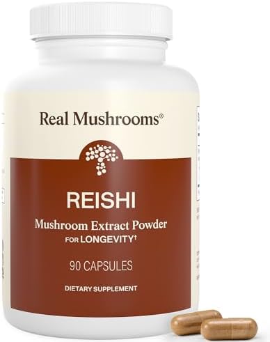 Real Mushrooms Reishi Mushroom Capsules - Handpicked Organic Mushroom Extracts - Red Reishi for Tranquil Daily Wellness with Verified Beta Glucans Vegan, Non-GMO, No Grain Fillers, 90 ct