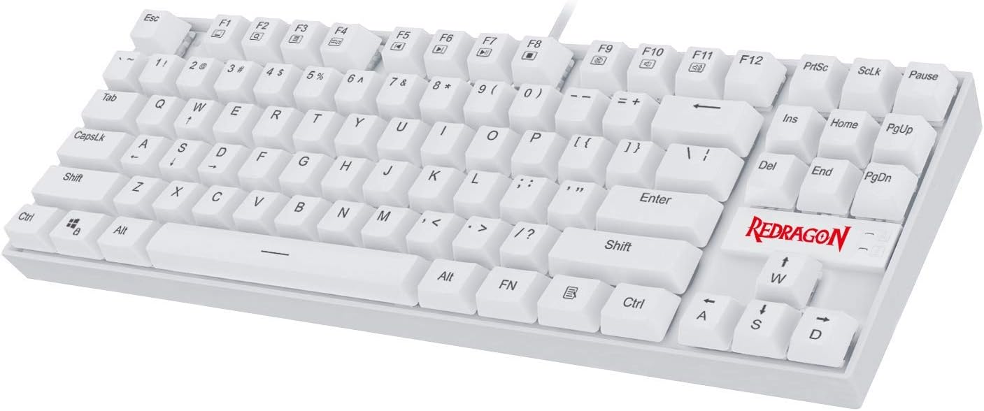 El teclado mecánico para juegos Redragon K552-N KUMRA blanco (SIN RETROILUMINACIÓN) cuenta con un diseño compacto de 87 Tenkeyless, sin teclado numérico separado. El teclado mecánico para juegos cuenta con una construcción sólida de aluminio y ABS de grado aeronáutico, teclas montadas en placa, teclas moldeadas por inyección de doble disparo, alta gama interruptores con resortes mecánicos ultrarresistentes. Cable USB de alta velocidad con conector USB chapado en oro libre de corrosión para una conexión fiable que resistirá los juegos más intensos y rápidos. El teclado mecánico para juegos definitivo * SIN LUZ DE FONDO * Teclas grabadas con láser * Base de teclado robusta hecha de aluminio de calidad aeronáutica * Diseño compacto que ahorra espacio con 87 teclas * Todas las teclas son 100% libres de conflictos, anti-ghosting * Interruptores azules mecánicos personalizados, a prueba de polvo * Patas traseras ajustables para una perfecta ángulo de escritura * Intercambio de teclas con flechas WASD * 11 teclas multimedia combinadas con teclas FN * La tecla WIN se puede desactivar * Peso Dimensiones: 30.7oz, 13.93x4.86 x1.46 pulgadas * Para Windows 10, Windows 8, Windows 7, Windows Vista y Windows XP Contenido de la caja * Teclado (versión blanca, NO retroiluminado) * Extractor de teclas * Usuario guía * Tarjeta de garantía