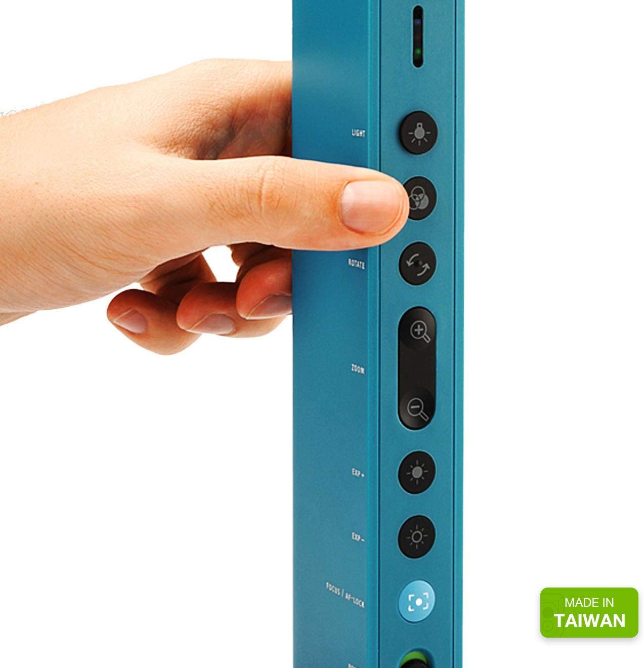 Designed and made in Taiwan. Swiveling head, Multi-Jointed stand, and small footprint allow you to capture freely from different height, angle, and orientation. Buttons conveniently located on vs.-x’s body enable you to adjust real-time images instantly.