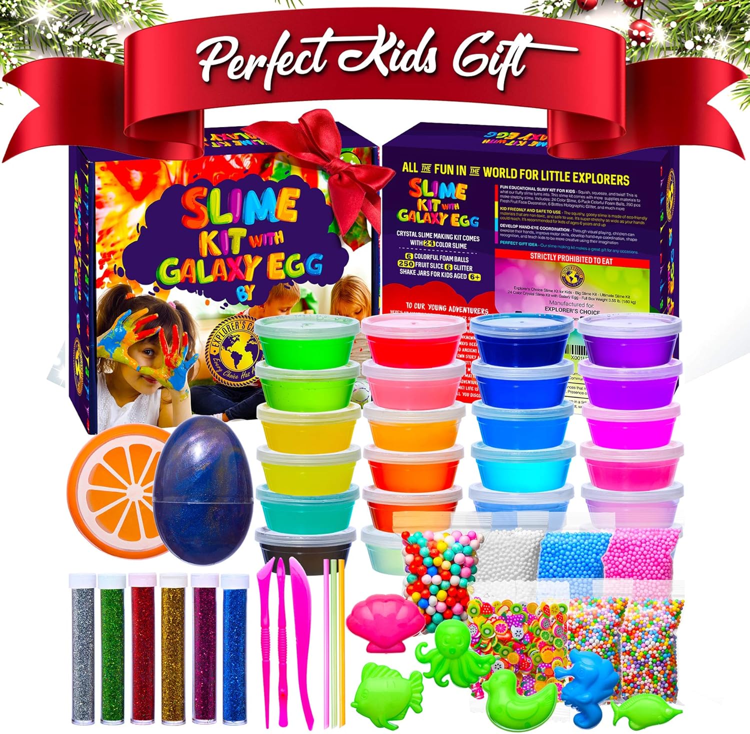 EXPLORER'S CHOICE Slime Kit for Girls and Boys - DIY Big Slime Kit 3.55 pounds - 24 Clear Slime Containers - Super Fun Toys for Girls and Boys - Slime Kits Supplies with Foam Beads
