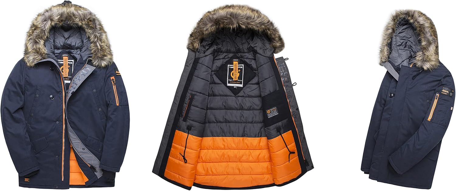 Parka TIGER FORCE para hombre, impermeable, con capucha, chaqueta acolchada para esquí y nieve, extremadamente fría