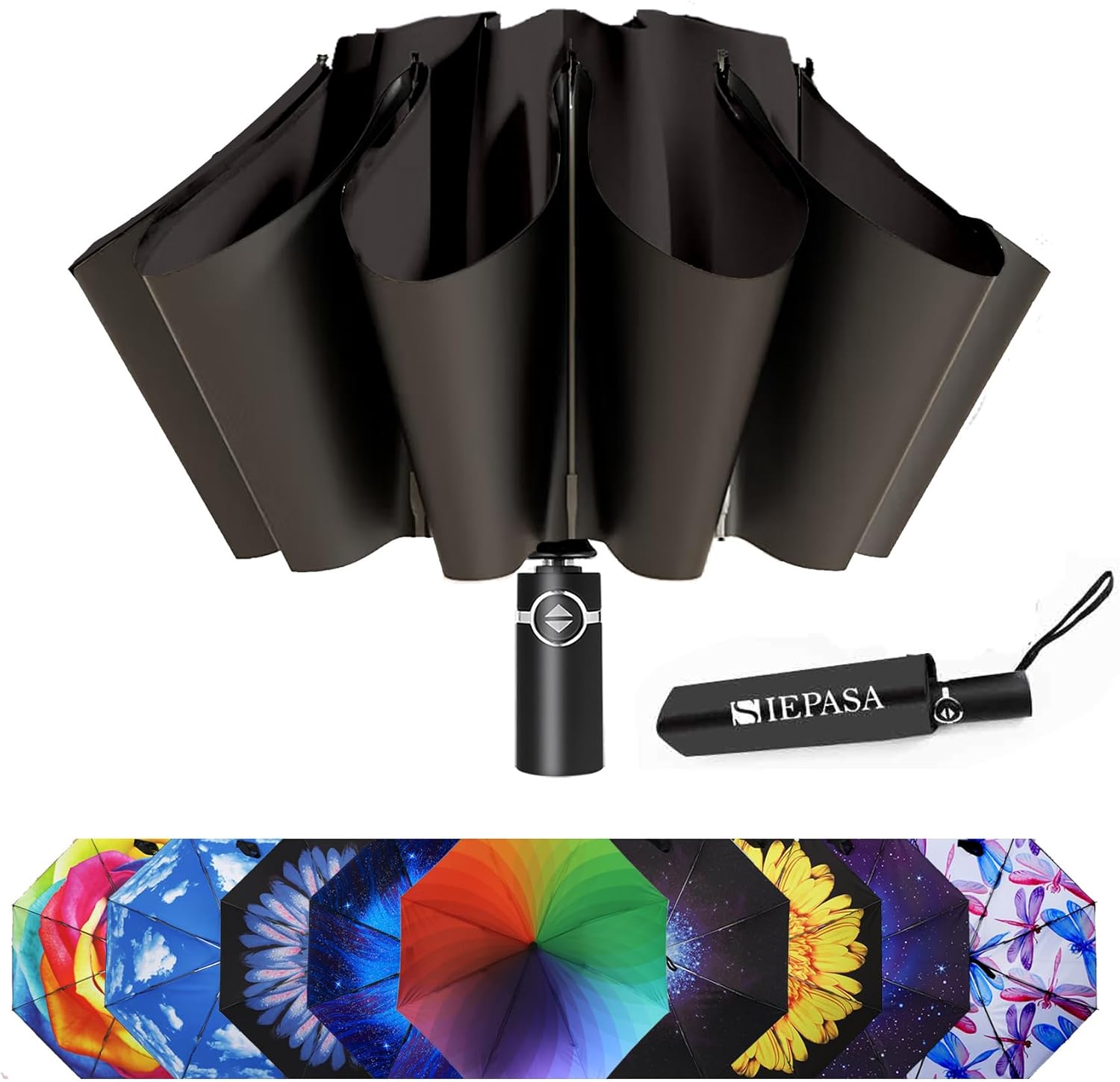 SIEPASA Inverted Umbrella, Large Windproof Compact Umbrellas for Rain & Sun, Compact Reverse Umbrella,Automatic Travel Folding Umbrella for Women Men.