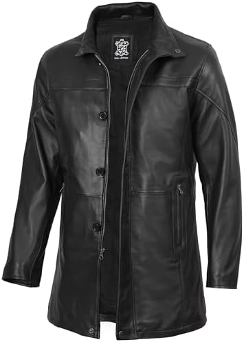 fjackets Leather Car Coats For Men – ¾ Length Real Lambskin Mens Fashion Brown & Black Leather Jacket Men