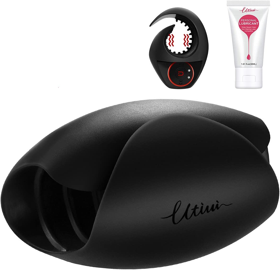 UTIMI Male Masturbator Cup Hitting Stroker Glans Training Set with 7 Vibration Modes, 1 Lube