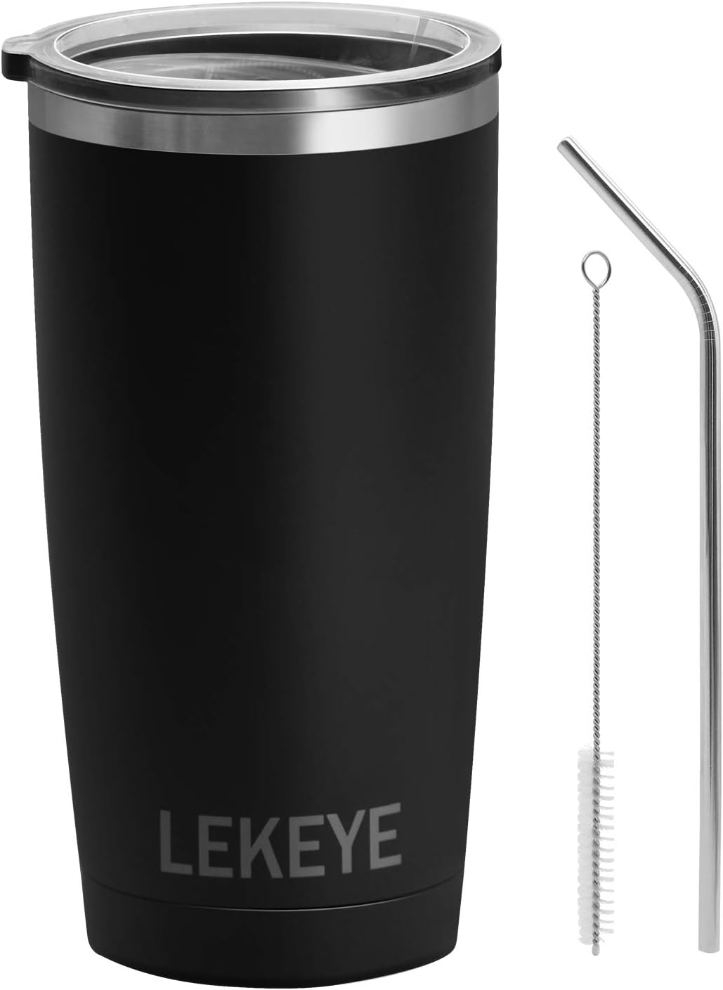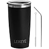 LEKEYE 20 OZ Stainless Steel Vacuum Insulated Tumbler with Anti-Split Lid/Double Wall Travel Mug/Sweat Free Coffee Cup/BLACK