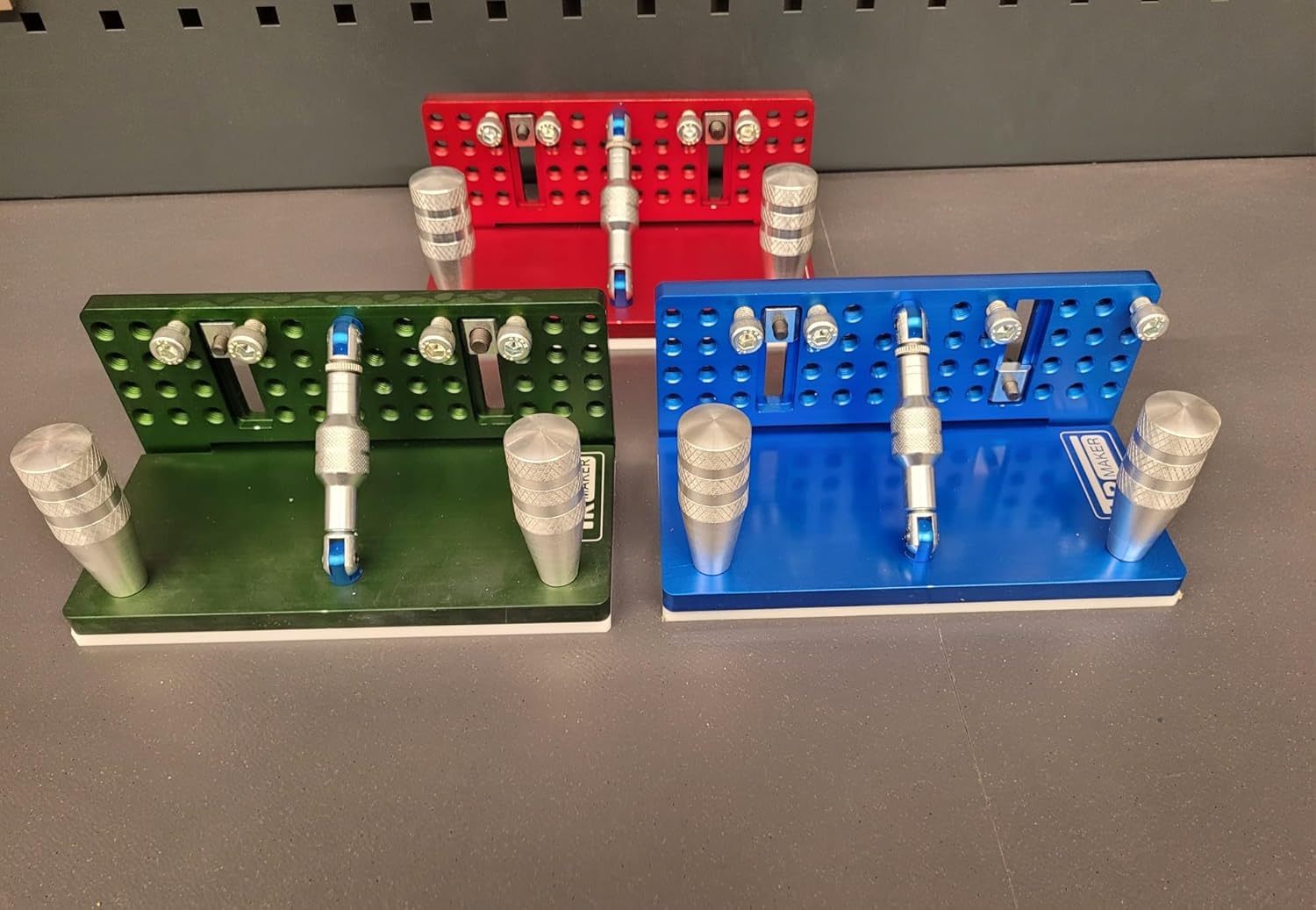 We claim that this knife jig will save you time and it is very easy to sharpen you knife with this product · Adjustable angle from 90 degrees to 125 degrees · 8" (20 cm) lenght ve 3,15" (8 cm) height · Noncorrosive body of the product that is made from T6061 plane aluminum is embroidered in sensitive CNC machines. The body is machined from aluminum to assist in dissipating the high heat generated during grinding. · It has 30 big(m8) and 16 small (m6) threaded bolts for many different knife models. · Because of two big conduits, you can connect your knives in any heights you desire. · You will receive 6 additional bolts to connect your knives · It never vibrates thanks to hinge that buried in the body of the product · Becuse of the special desing jointed handle, it opens to right and closes to the left · For a better use and comfort, it has a special arm to hold and grasp · It has a durable plastic layer like a sledge at the bottom of it to provide a better slide · Thanks to anodized coating, the product is protected toward corrosion).(Blue, Black, and golden colors are avaliable. Please look over our products in our store · It is very easy to clean; Clean it with water and dry it.