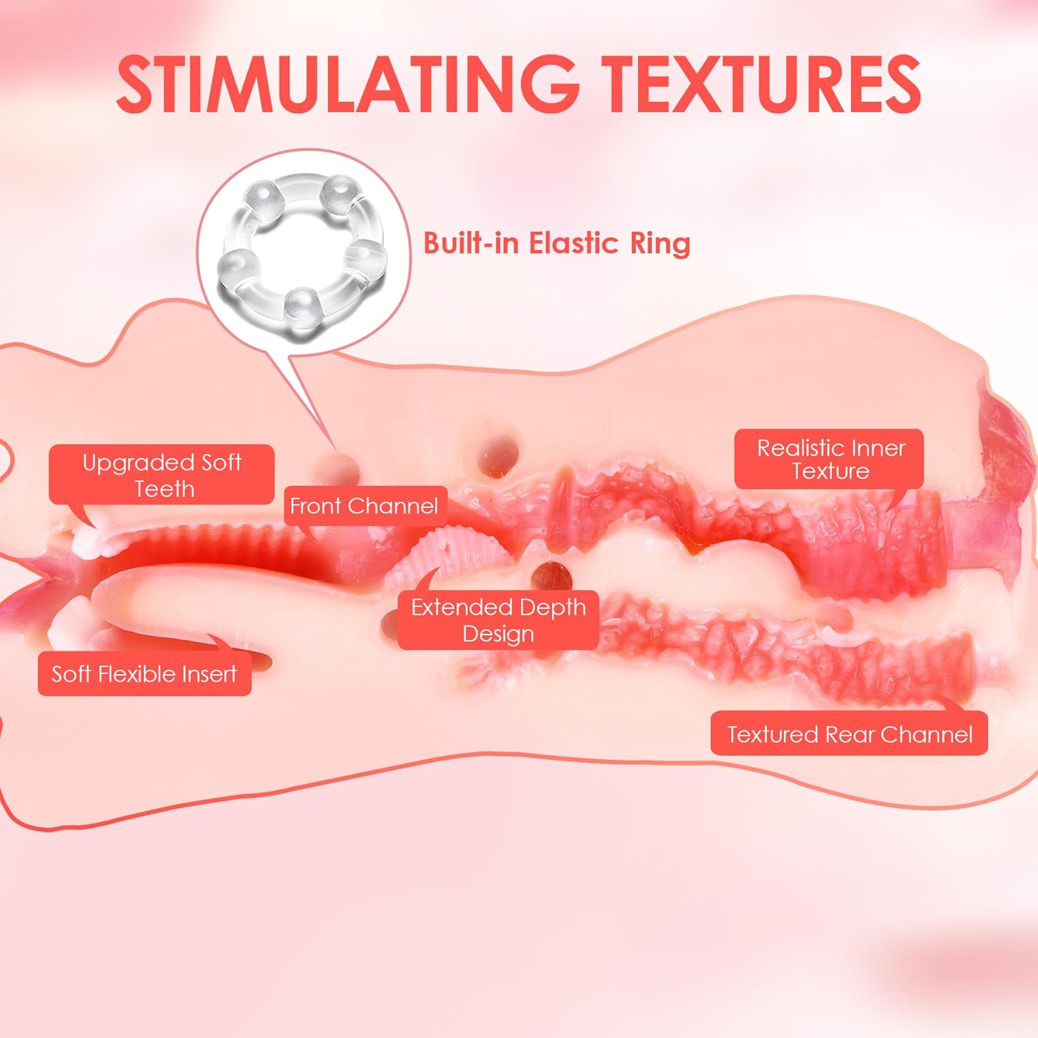 【Sex Toy for Men Built-in Tighten Rings】Our men adult toy equipped with two elastic rings which effectively keep the channel from becoming loose after prolonged use. Enjoy the long-lasting tightness she brings you