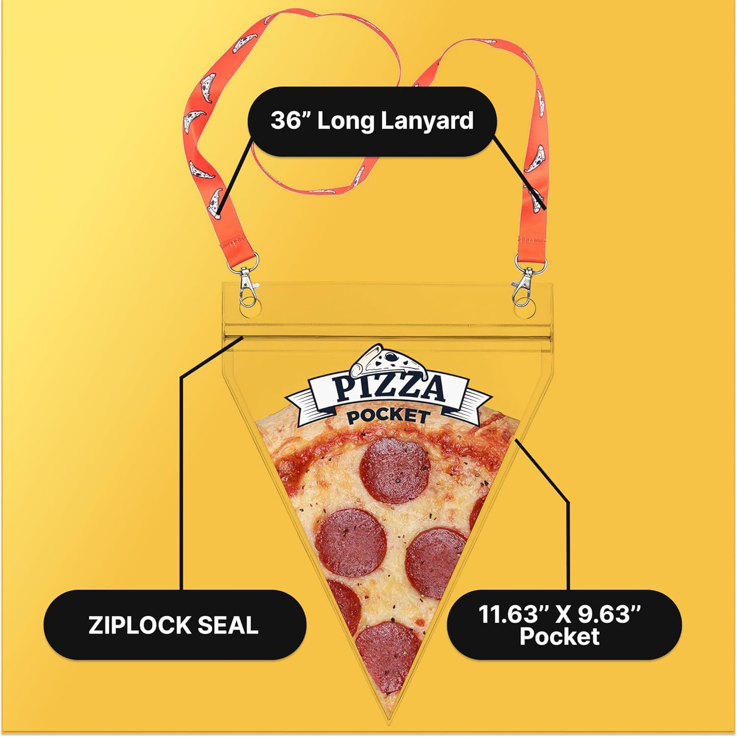 Life often presents you with many problems. Thankfully Fairly Odd Novelties has solved one of them. Pizza at home or in a restaurant, sure it's great, but what is even better? Being able to take a delicious slice on the go. With the pizza pocket you can do just that. Just think, no more greasy pants pockets of sadness from carrying a slice the old-fashioned way like a plebeian. Carry that pie with pride, adorning your neck as a badge of delicious honor. Now you can tread boldly though this world and never worry about being without a slice ever again. Other pizza carrying Systems Simply can't compare with the handiness, good looks, and style of the pizza pocket. Not to mention that a true pizza aficionado is never without their finest slice, and now neither are you! So grab a slice of the good life or give the ultimate pizza gift this year! You know you want to enjoy and bon Appetite! Do not use pizza pocket in oven or microwave! Includes one zipper sealable pizza pocket and pizza designed lanyard. Overall Product Dimensions are 13. 00" X 9. 63" X 0. 08". Pocket dimensions are 11. 63" X 9. 63" X 0. 08". Lanyard is 36. 00" In length.