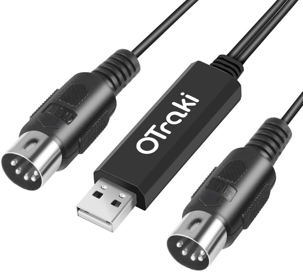 Convertidor de cable USB MIDI 2.0 3.0 de OTraki, interfaz USB a cable MIDI de entrada y salida de 6.5 pies con chip de procesamiento FTP+DIN de 5 pines, perfecto para PC portátil a teclado de piano profesional en el estudio de música en casa